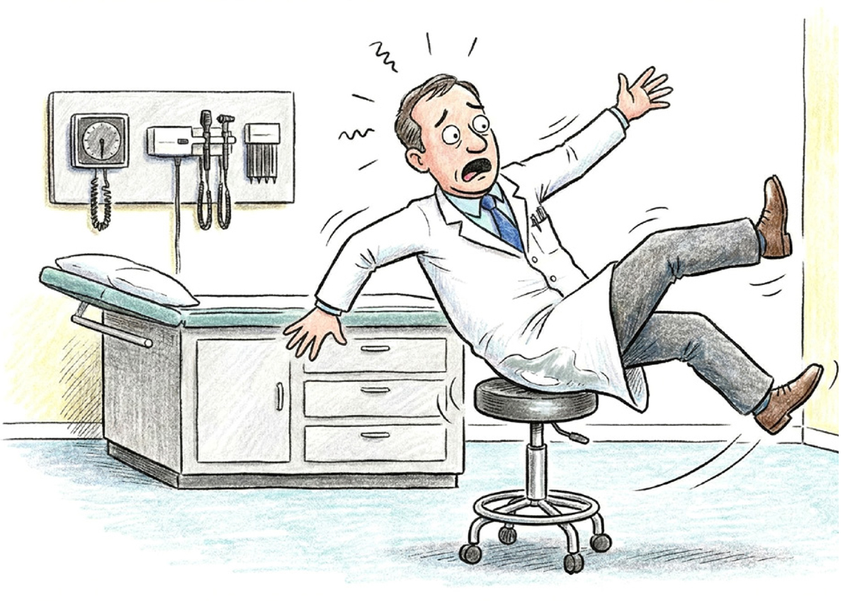 The shift from 100% cotton scrubs to polyester blends has improved durability and stain resistance but introduced a hidden safety issue. Polyester has a lower coefficient of friction than cotton, and when combined with standard vinyl seating, it creates a low-friction surface that affects posture and stability. Clinicians lose grip on the seat, which leads to constant muscle bracing and a gradual collapse in posture, or worse a slip-and-fall accident