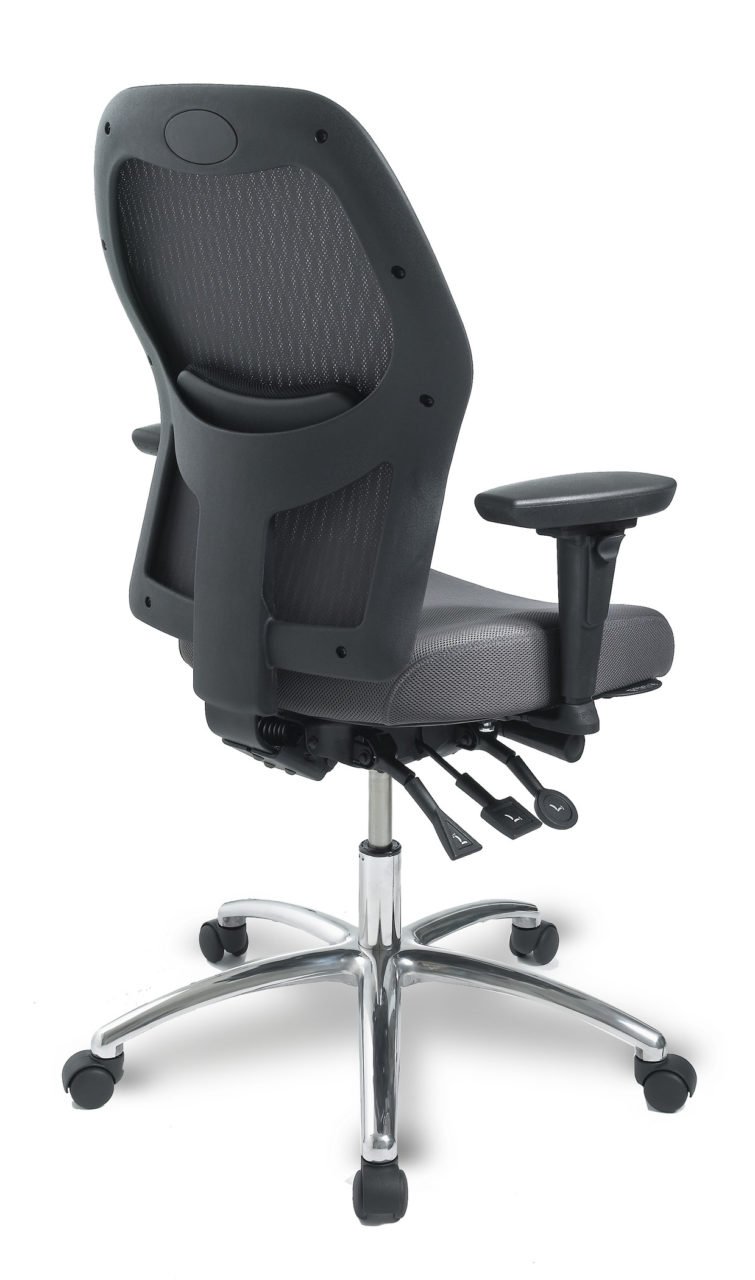 Le fauteuil à mailles ecoCentric comprend un dossier à mailles de qualité supérieure comportant une section de 4 po pour le réglage du soutien lombaire. L’option d’assise aérée en mousse conjugue les avantages de la libre circulation de l’air aux bienfaits du confort et du soutien ergonomiques éprouvés des revêtements en mousse et en tissu.