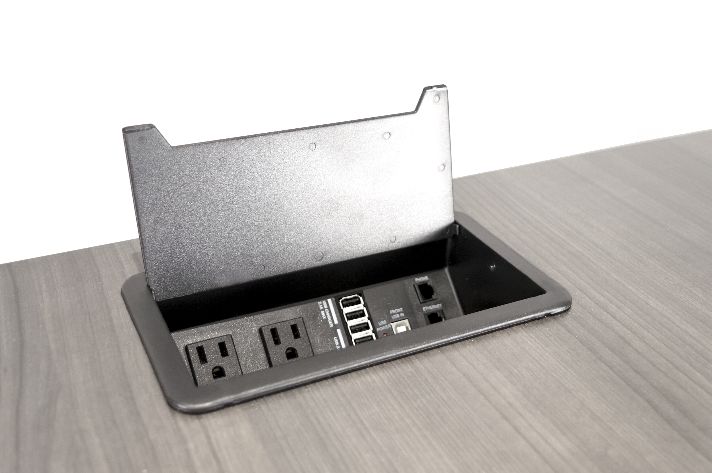 Voici le concentrateur qui confère un aspect fonctionnel à tout poste de travail. Cessez de chercher de l’espace en éliminant la panoplie d’adaptateurs grâce à la station d’alimentation et de données. Celle-ci offre deux prises CA, deux ports de charge USB, nombre de ports de transmission de données ainsi que des coupleurs téléphonique et Ethernet, et ce, dans un seul produit pratique.