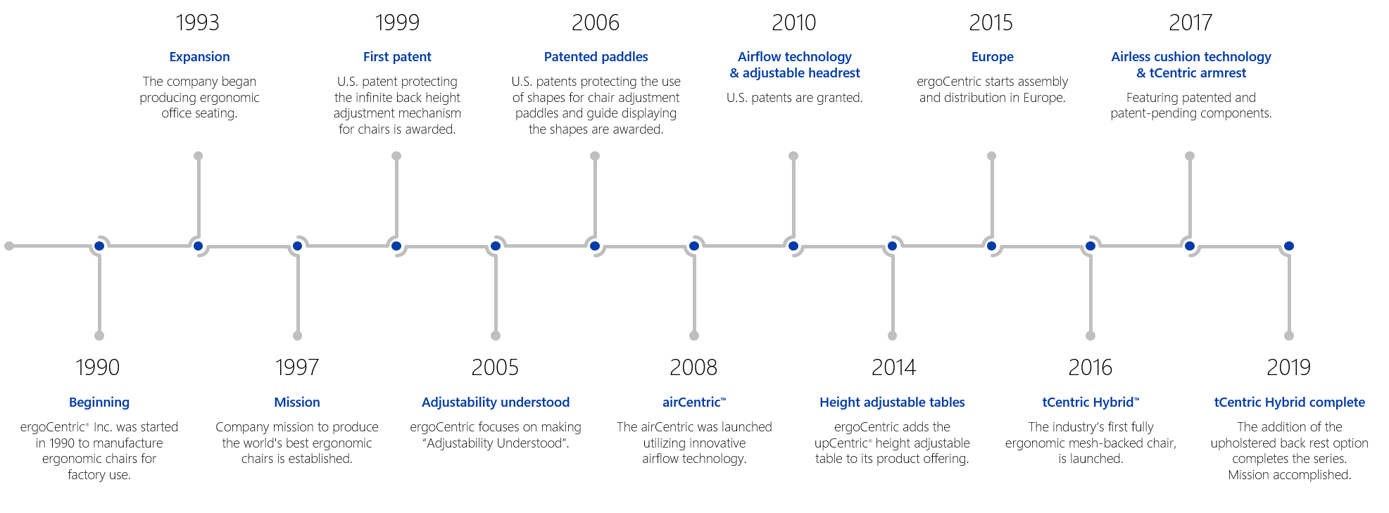 ergoCentric inc. entame en 1990 ses activités de fabrication de sièges de travail ergonomiques destinés au secteur manufacturier.