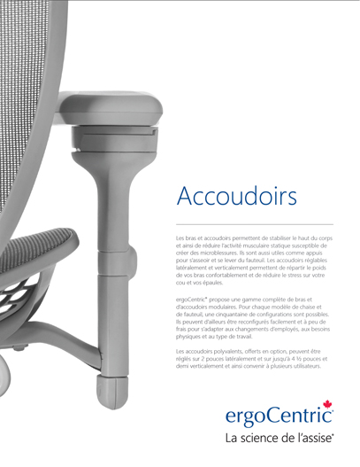 Les bras et accoudoirs permettent de stabiliser le haut du corps et ainsi de réduire l’activité musculaire statique susceptible de créer des microblessures.