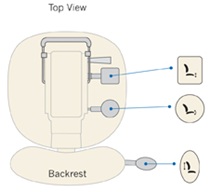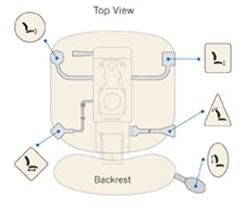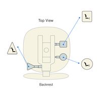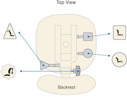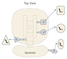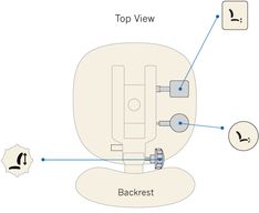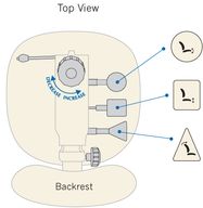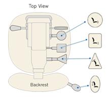 Unique à ergoCentric, les icônes d’instructions faciles à identifier représentent les formes de palettes de réglage brevetées et sont clairement visibles sur une plaque d’icônes. L’emplacement pratique de ces plaques d’icônes offre une vue claire des options de réglage ainsi qu’un rappel visuel pour régler le fauteuil et les palettes à utiliser pour chaque réglage du fauteuil. Une adresse de site Web marquée sur la plaque d’icône indique où vous pouvez accéder directement à la vidéo du guide de réglage étape par étape à tout moment.