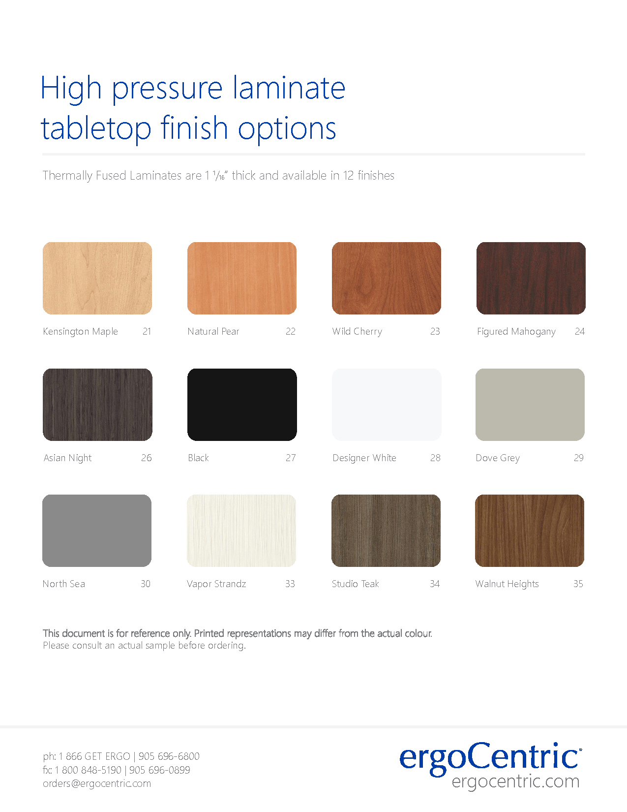 High pressure laminate tabletop finish options.